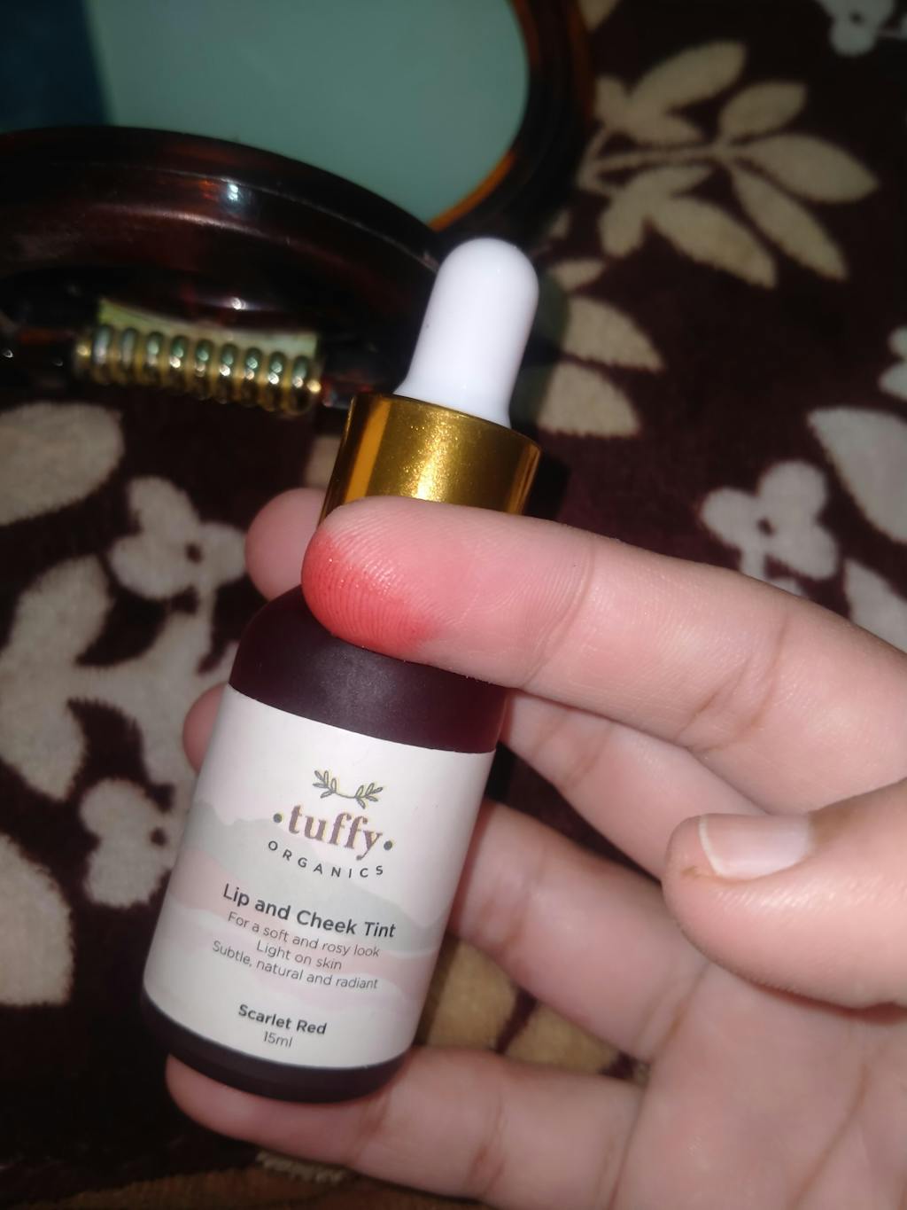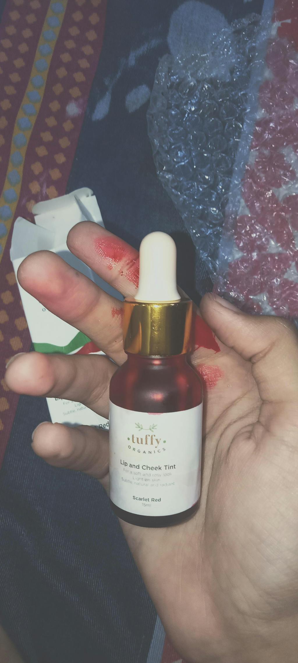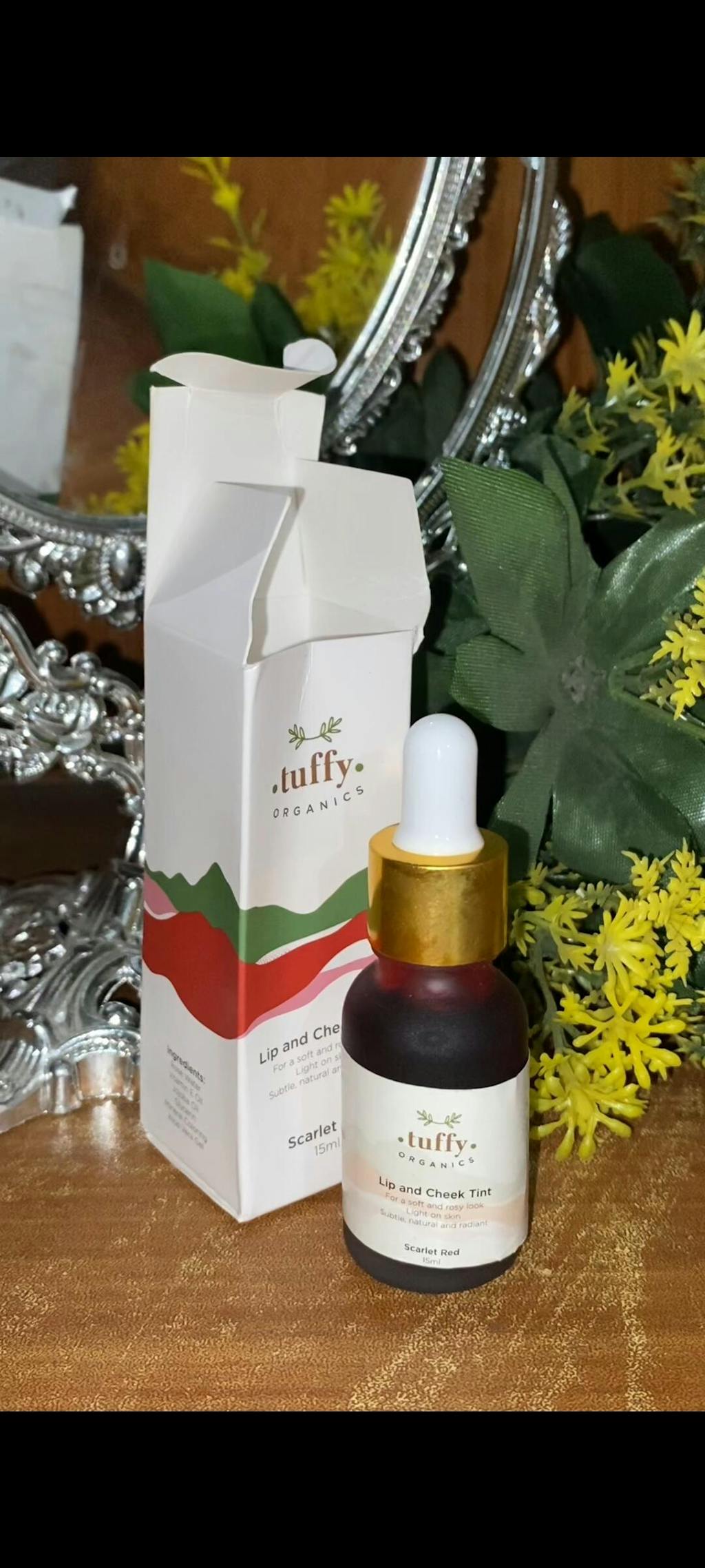 Revive yourself with our Scarlet Red Lip and Cheek Tint! Crafted with hydrating Rose Water and moisturizing Aloe Vera, this tint will give you a natural blush.